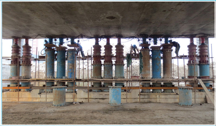 根據(jù)設計提供的數(shù)據(jù),調(diào)坡頂升最高2.454m, 最低0.693m。該項目于2012年12月中旬完成。