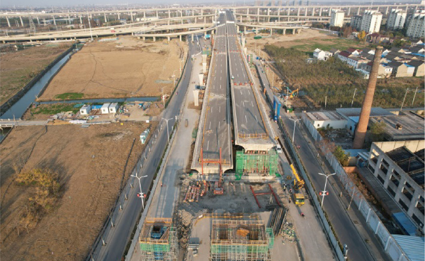 鹽城市北環(huán)樞紐高架橋頂升改造工程,是在充分利用既有橋梁的基礎(chǔ)上,按照城市快速路標準進行頂升,拼接加寬改造。
