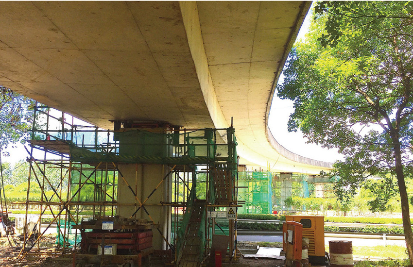 上海東南郊環(huán)大東立交匝道橋連續(xù)曲線箱梁糾偏旋轉(zhuǎn)工程