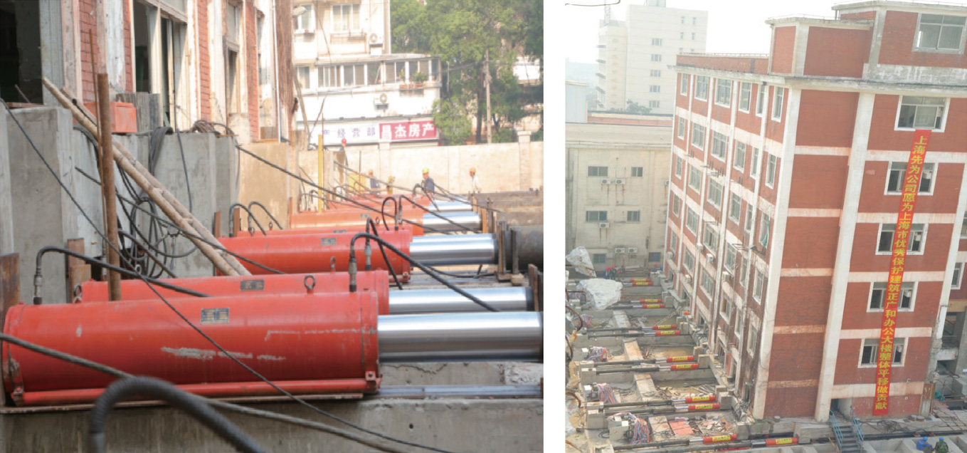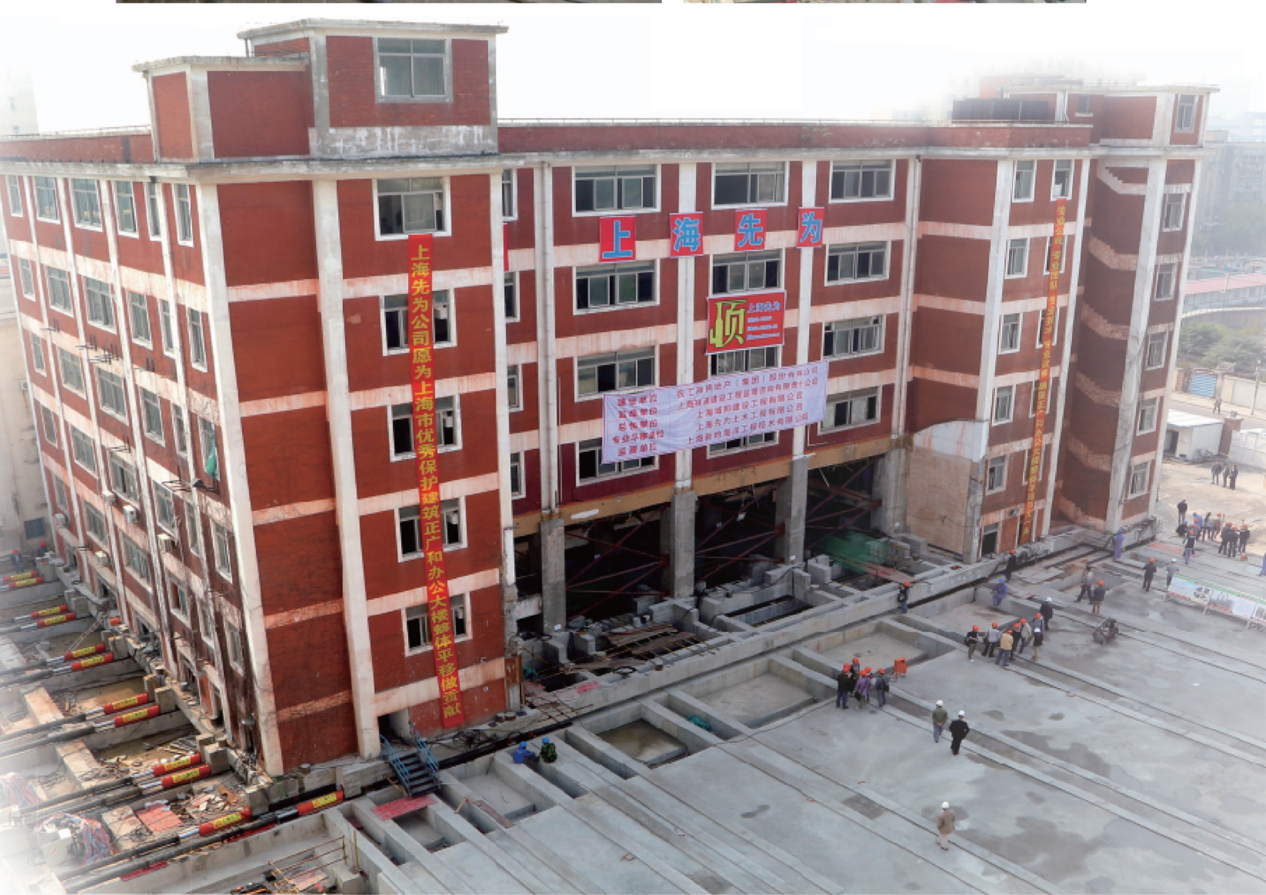 該工程采用液壓懸浮技術(shù)進(jìn)行平移,先沿縱軸向向西平移5.388m, 再沿橫軸向向北平移33.258m, 移位總距離38.646m。整個工程于2014年11月19日順利完成。