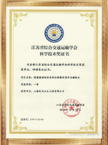 江蘇省綜合交通運(yùn)輸學(xué)會(huì)科技一等獎(jiǎng)