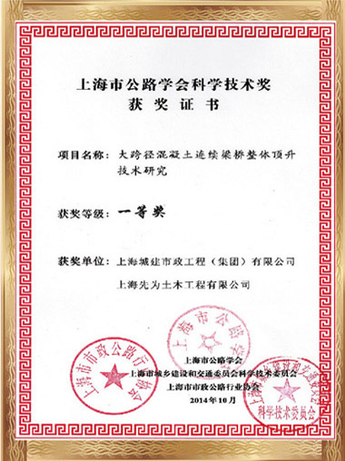 上海市公路學(xué)會(huì)科技一等獎(jiǎng)