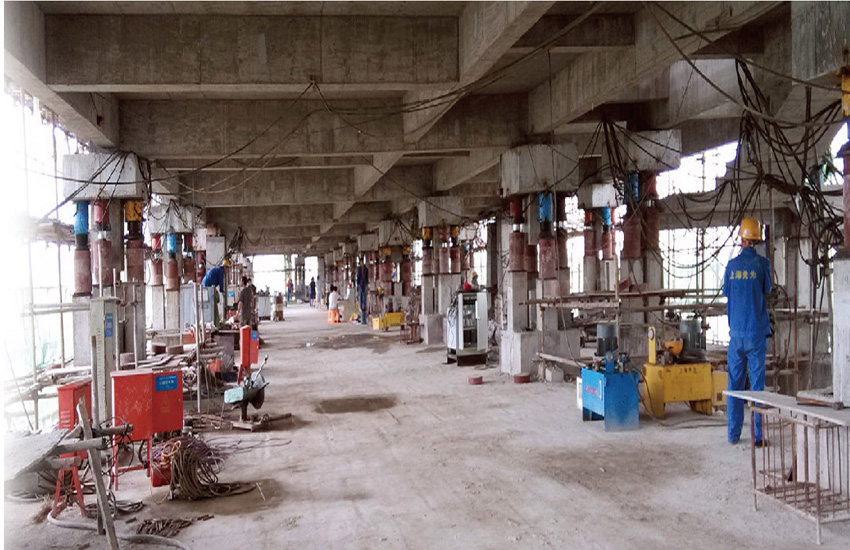 第二層頂升荷載51000KN, 第三層頂升荷載39900KN,第四層頂升荷載29246KN, 第五層頂升荷載188553KN, 單柱最大荷載194t。