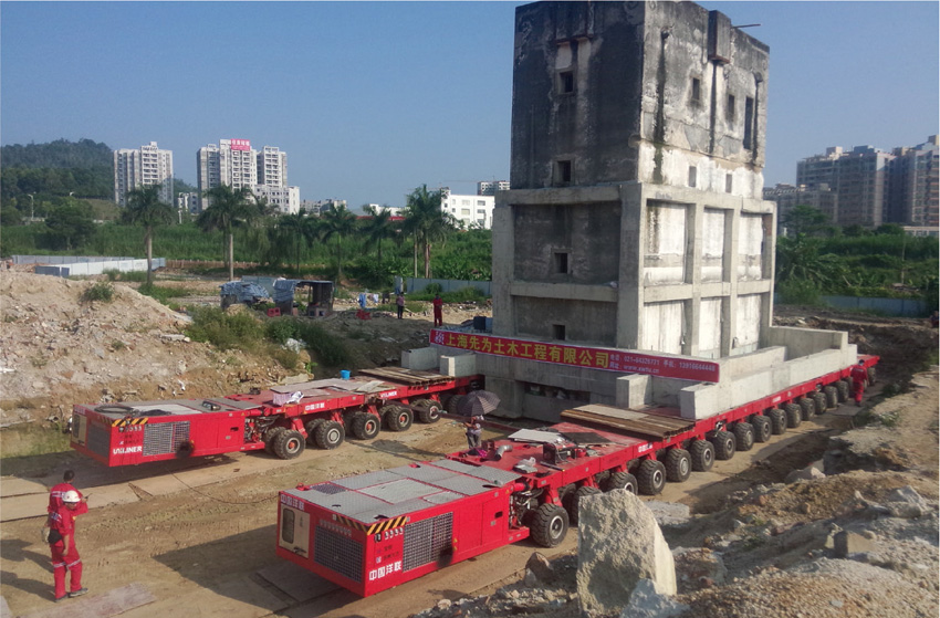 本次采用組合式自平衡平板液壓車(chē)進(jìn)行平移,工程于2015年12月31日竣工。
