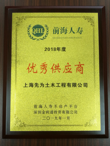 榮獲“2018年度優(yōu)秀供應(yīng)商”獎(jiǎng)項(xiàng),是寶能集團(tuán)前海人壽不動(dòng)產(chǎn)平臺對上海先為土木工程有限公司的 肯定和認(rèn)可,更是對未來不斷攜手共同打造精品工程的憧憬。