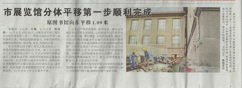 我公司大同展覽館圖書(shū)館平移1.09m成功